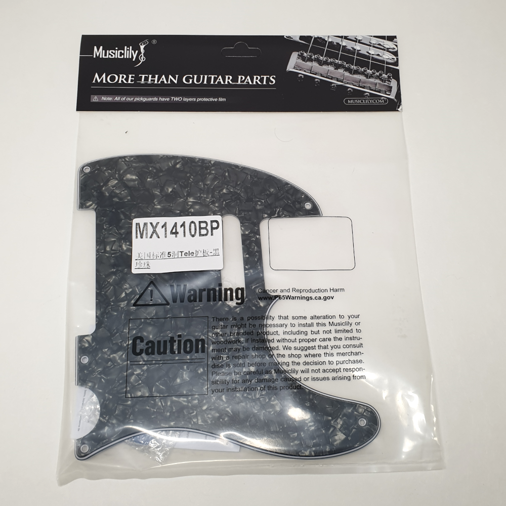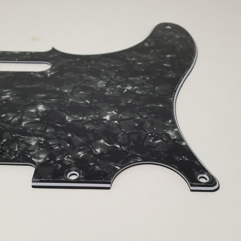Slagplaat voor telecaster gitaar, in black pearl uitvoering. De slagplaat is voorzien van 5 bevestigingsgaten, compatibel met Fender USA/Mexico modellen. In de slagplaat kunnen standaard telecaster elementen gemonteerd worden.