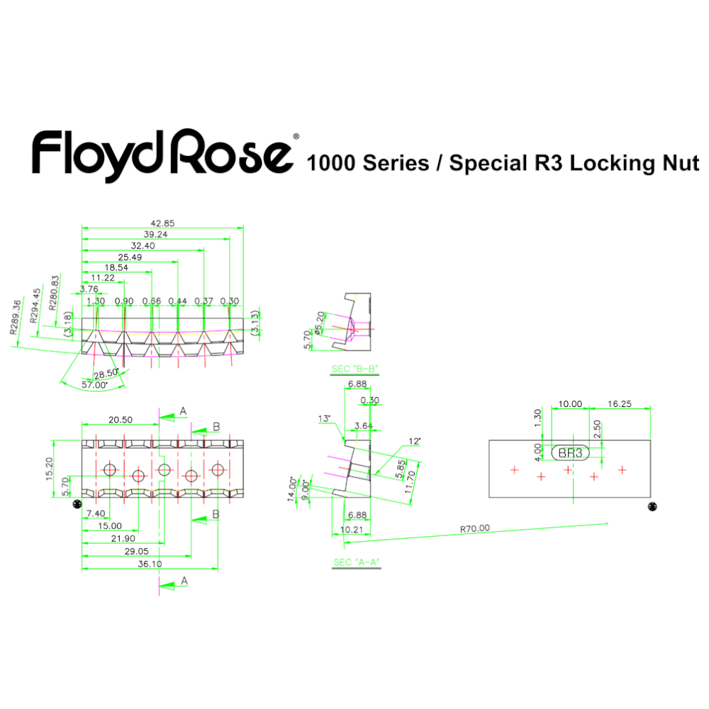 Deze locking nut wordt toegepast op gitaren met een Floyd Rose tremolo systeem. De topkam wordt inclusief montage schroefjes geleverd. Deze locking nut is compatibel met 1000 Series, 1000 Series Pro, Special en Non-Fine tuner tremolo systemen.