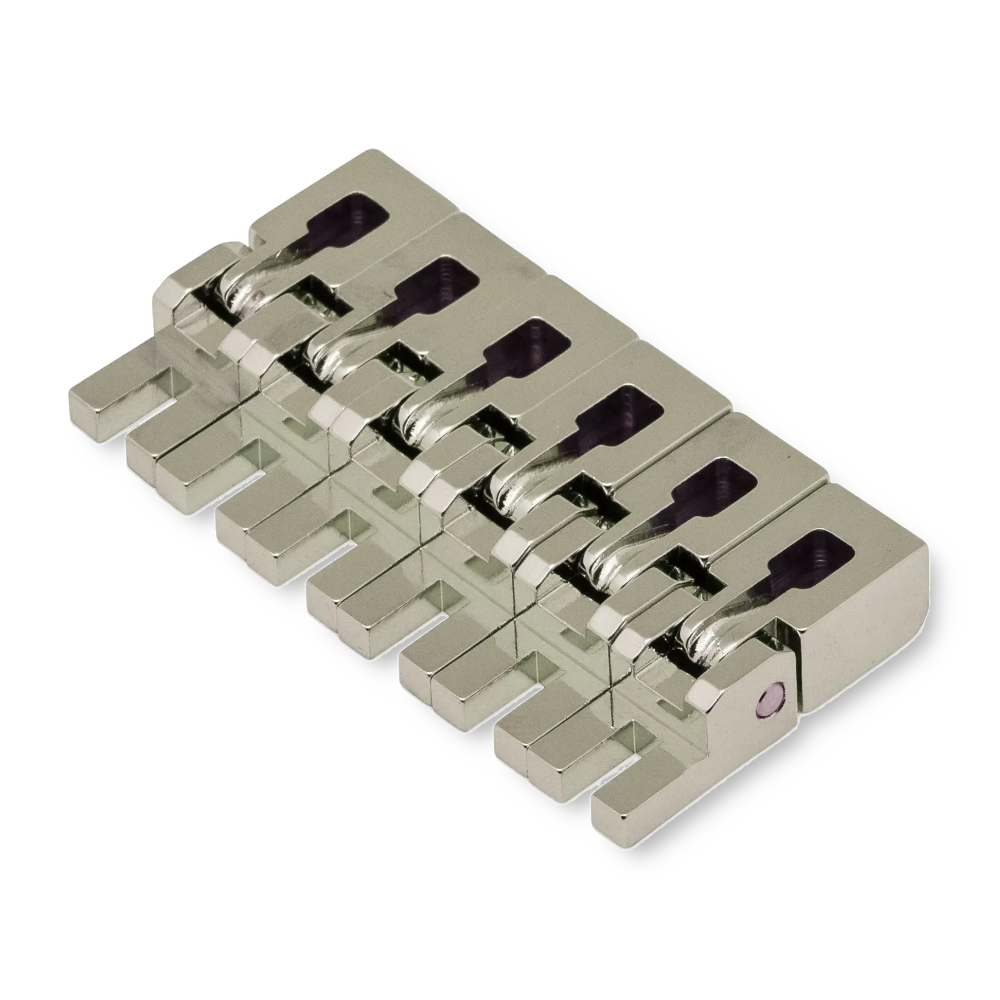 Floyd Rose tremolo’s worden standaard geleverd met zadels met een radius van 12 inch, maar nu bent u daar niet langer aan gebonden. Er zijn zadels verkrijgbaar in 10, 14, 16 en 17 inch voor een perfecte pasvorm op de toets, zonder dat er vulplaatjes nodig zijn en zonder dat u moeite hoeft te doen om ze uit te lijnen. Als u uw tremolo-opstelling wilt optimaliseren, zijn deze zadels snel en eenvoudig te installeren. Verkrijgbaar in chroom, zwart, goud en nikkel voor een naadloze match met je gitaarhardware.