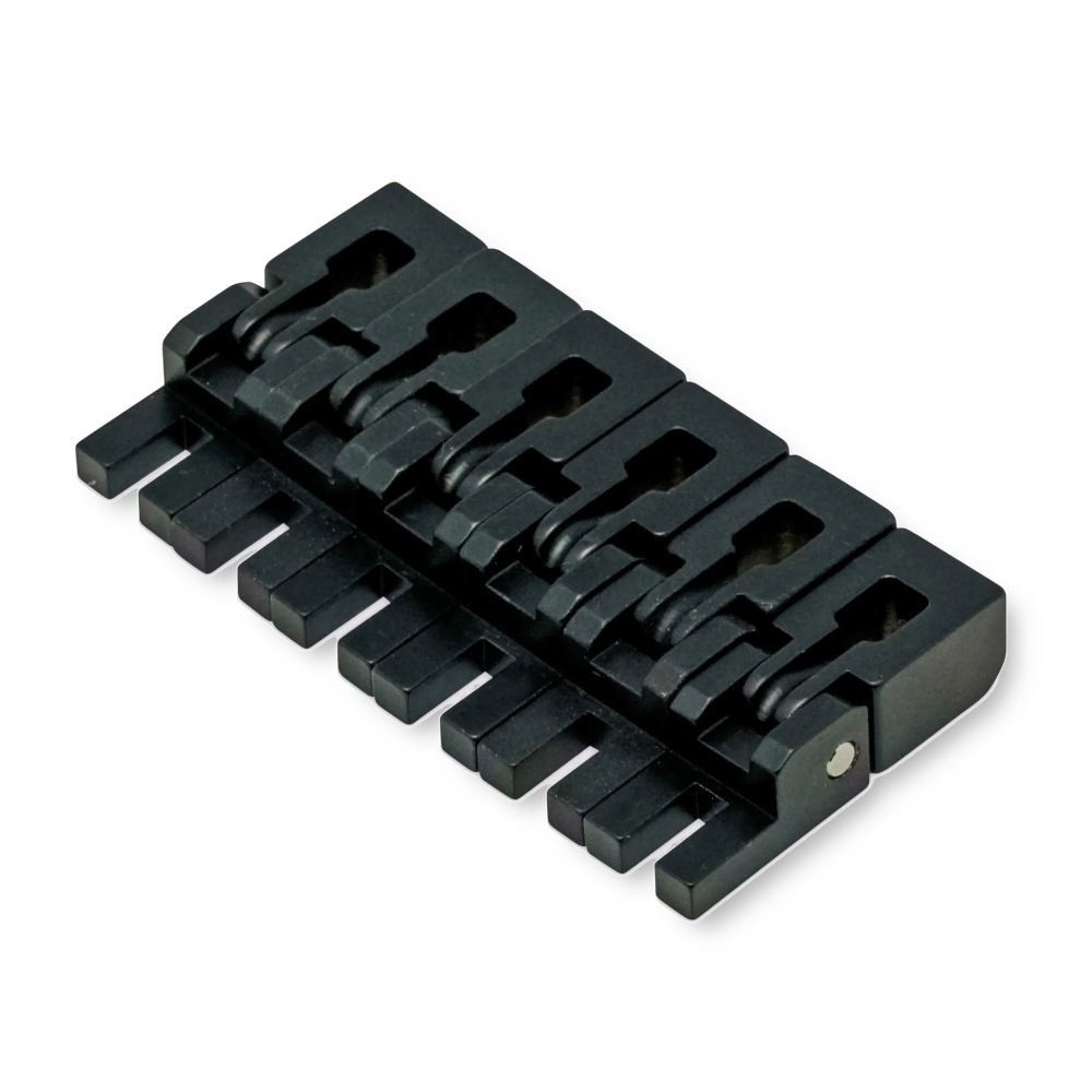 Opmerking: bij het vervangen van zadels op Floyd Rose 1000-serie, Special, By Floyd Rose of oudere Original tremolosystemen vereisen bijgewerkte CNC-specificaties nieuwere insertblokken met afgeronde hoeken voor snaarvergrendeling (compatibel: Original, KTS Titanium en nieuwe kleurrijke roestvrijstalen insertblokken).
