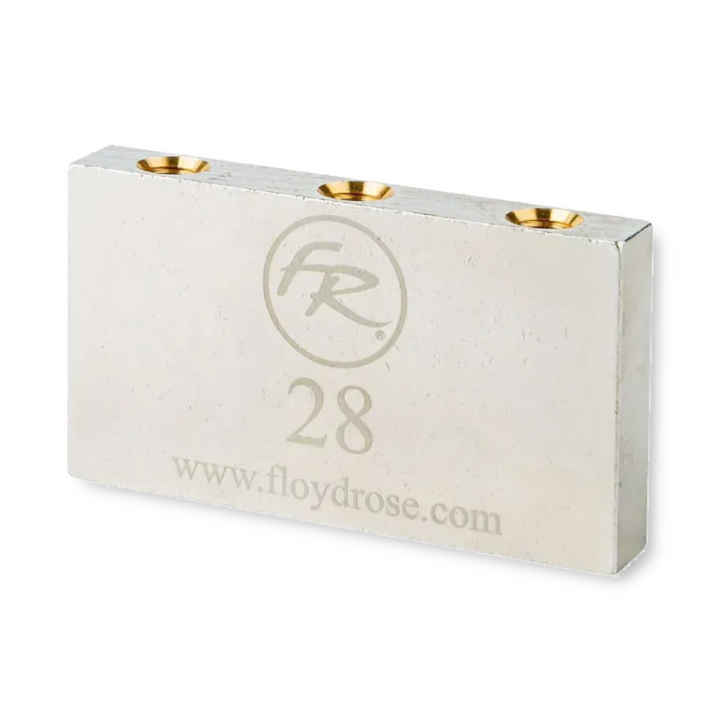 Dit Floyd Rose Original tremolo blok is gemaakt van vernikkeld messing. Geschikt voor Original Series 6 en 7 snarig, Special (6-snarig) en 1000 (6-snarig). De hoogte van het blok is 28 mm, de hart afstand tussen de buitenste schroefgaten is 34 mm.