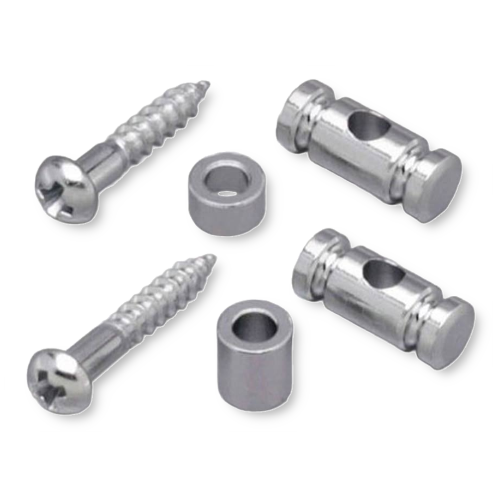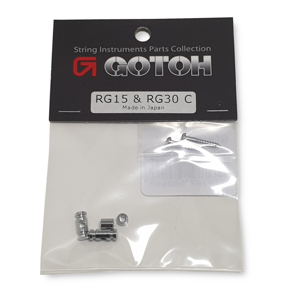 Deze Gotoh snaargeleiders kan op de gitaarkop gemonteerd worden met behulp van de meegeleverde schroefjes en afstandsbusjes.