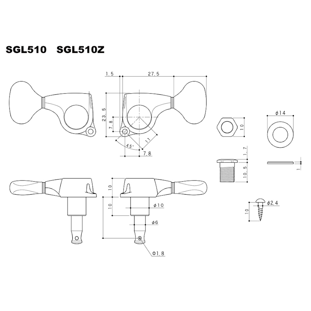Deze mechanieken, in fraaie cosmo black uitvoering, kunnen worden toegepast op elektrische gitaren, maar kunnen ook op akoestische gitaren gebruikt worden. Deze set bestaat uit 6 mechanieken, inclusief het benodigde montage materiaal.
