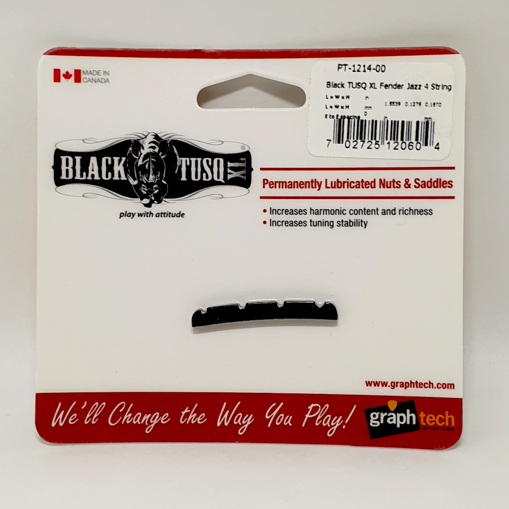 Graph Tech PT-1214-00 topkam in zwarte uitvoering. Deze topkam is gemaakt van Black TUSQ, en is geschikt voor 4-snarige basgitaren. De gleufjes voor de snaren zijn reeds voorbewerkt. Met PTFE impregnering, voor betere tuning stabiliteit en langere levensduur van de snaren.
