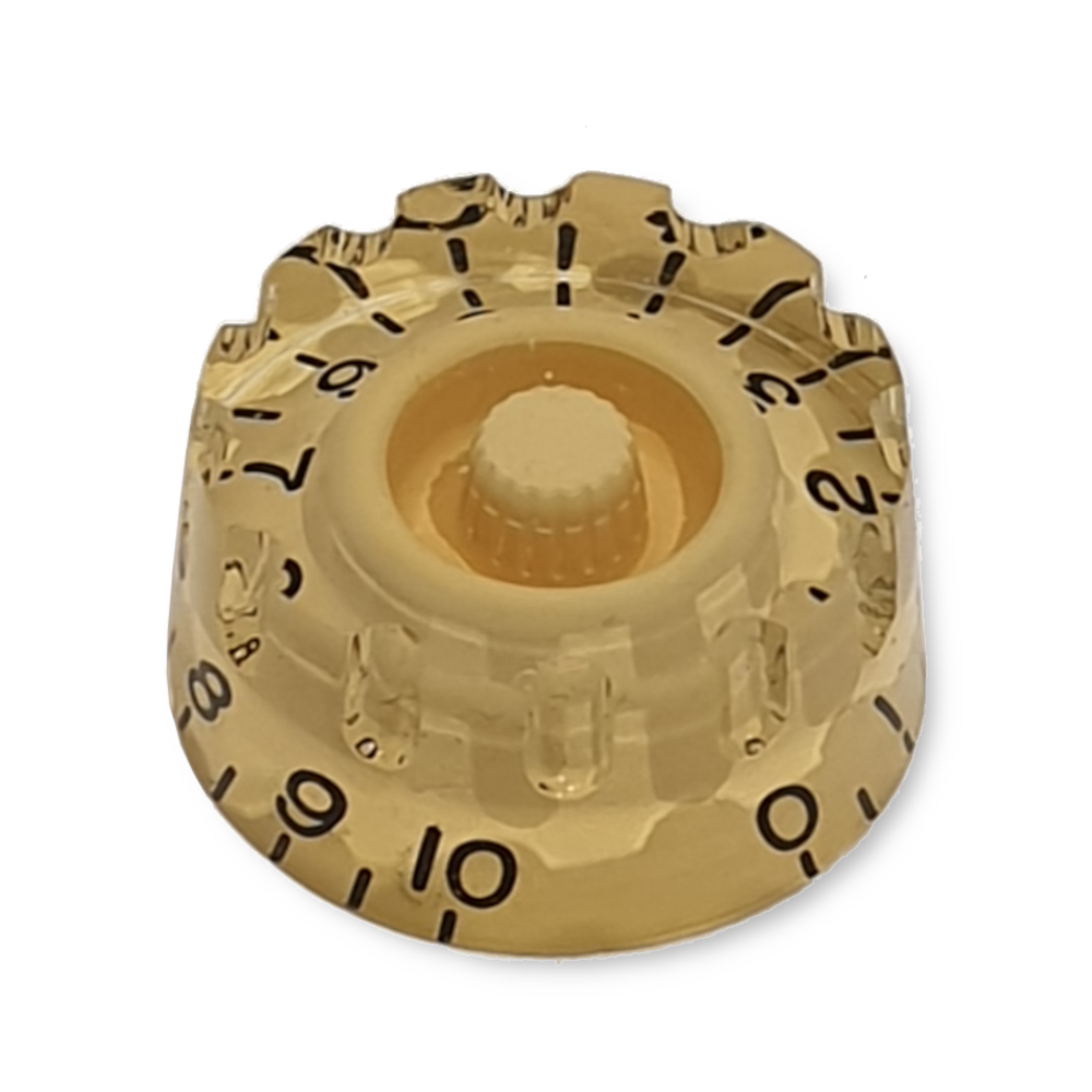 Deze speed knop kan worden toegepast als volume of tone regelaar op de meest gangbare gitaren. De knop is geschikt voor potmeters met een gespleten geribbelde as met 18 ribbels (15/64 inch maat, past op gangbare Azie/Europa potmeters zoals Alpha, past NIET op USA/Imperial zoals CTS/Fender/Bourns/Dimarzio). De knop is voorzien van een gekartelde rand voor extra grip.
