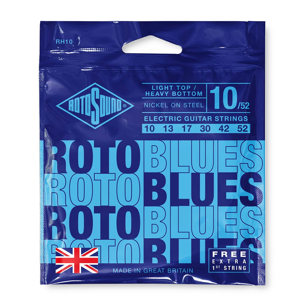 Rotosound RH10 Blues 010-052 snarenset. Deze set snaren is geschikt voor elektrische gitaar. De omwikkeling van de snaren is van het type nickel plated roundwound.