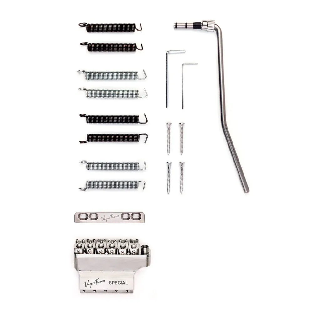 De VegaTrem VT1 Special is een unieke floating tremolo met een innovatief design. De VT1 Special heeft een messing sustain blok (bij de “normale” VT1 is het blok gemaakt van staal). De brug bestaat uit een vast en een zwevend deel, wat “extreme bends” mogelijk maakt. Deze tremolo is uitwisselbaar met tremolo systemen op de meest gangbare stratocaster gitaren.