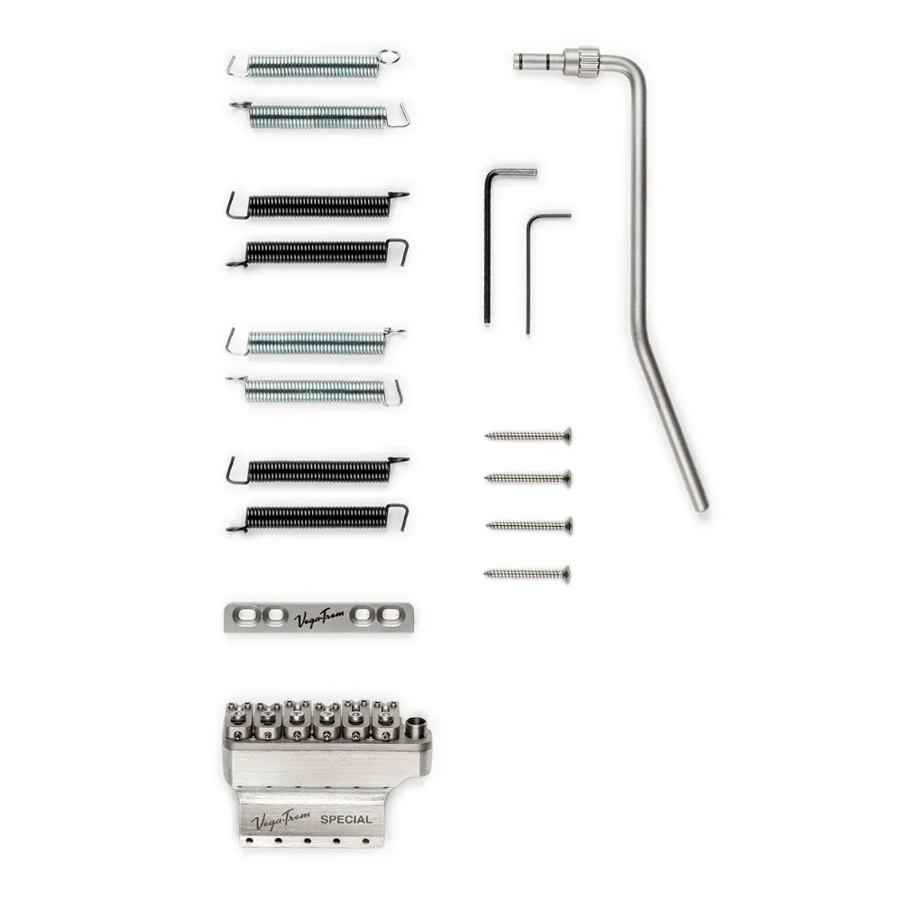De VegaTrem VT1 Special is een unieke floating tremolo met een innovatief design. De VT1 Special heeft een messing sustain blok (bij de “normale” VT1 is het blok gemaakt van staal). De brug bestaat uit een vast en een zwevend deel, wat “extreme bends” mogelijk maakt. Deze tremolo is uitwisselbaar met tremolo systemen op de meest gangbare stratocaster gitaren.