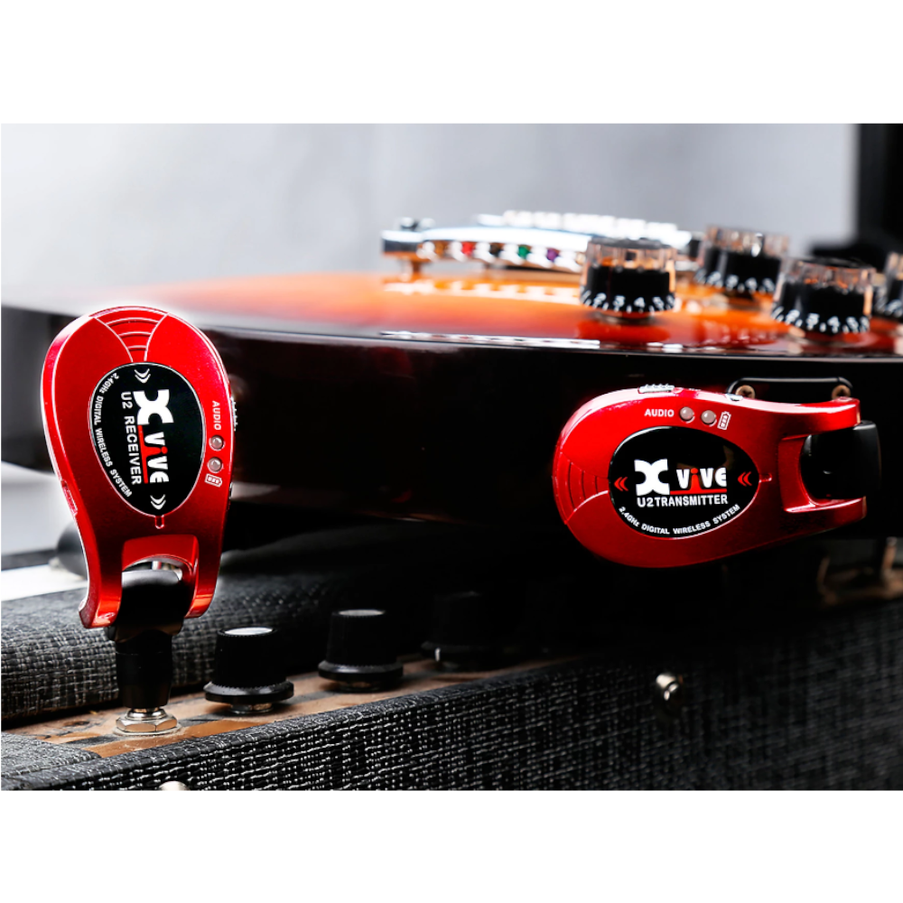 De XVive U2 Guitar Wireless System’s digitale technologie levert een ongelooflijk goede audiokwaliteit en superbetrouwbare draadloze verbinding voor je gitaar, bas en de meeste andere instrumenten en het past gewoon in je zak! De U2 heeft een volledige 20 Hz – 20 kHz frequentierespons, waardoor jij – en je publiek – altijd verzekerd zijn van het echte geluid van je instrument. Het systeem heeft een niet op te merken latency van 5ms, waardoor naast je toon ook je groove niet wordt aangepast! De 2,4 GHz ISM band biedt kristalheldere draadloze verzending, waardoor je signaal tot meer dan 21 meter goed blijft zonder dat je signaal wegvalt. De ingebouwde oplaadbare lithiumbatterij gaat tot op 5 uur per lading mee. Het chassis is gemaakt van duurzaam ABS-plastic dat het zware tourleven aankan net zoals de meest extreme klimaten.